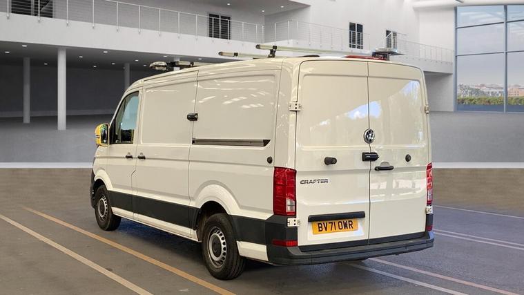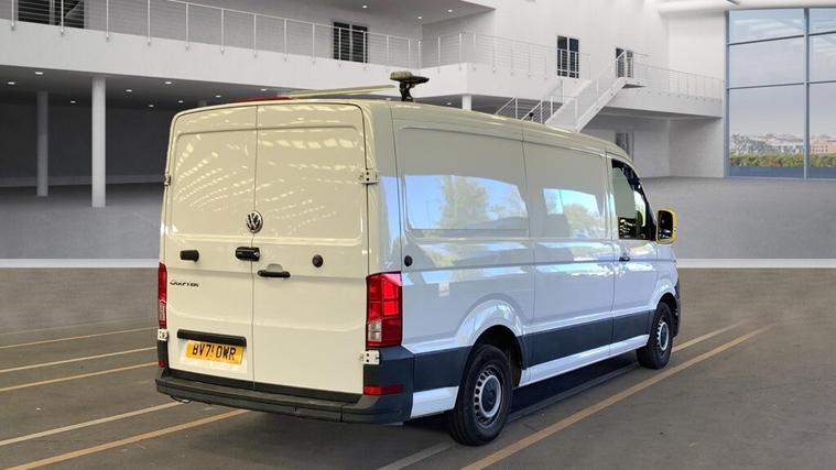 2021 71 reg VOLKSWAGEN CRAFTER CR35 2.0 TDI 140 TRENDLINE MWB LOW ROOF AUTO finished in WHITE with spec to include Full Service History, Parking Sensors, Air Con, Bluetooth, Bulkhead, Lined, Internal Racking, High Security Lock, Roof Rack, Electric Windows, PAS.