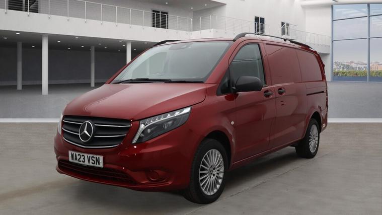 2023 23 reg Mercedes Vito 116 2.0 cdi 163 l2h1 Premium 9G-tronic auto finished in Red with spec to include service history, alloy wheels, parking sensors, reverse camera, sat nav, air con, multi function steering wheel, cruise control, bluetooth, bulkhead, ply lined, auto headlights, electric mirrors & windows, dab, pas.