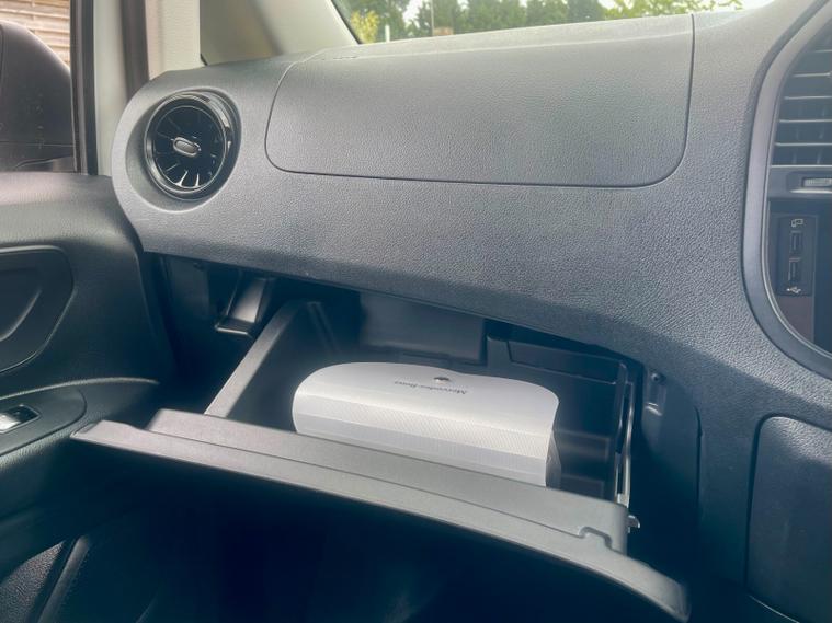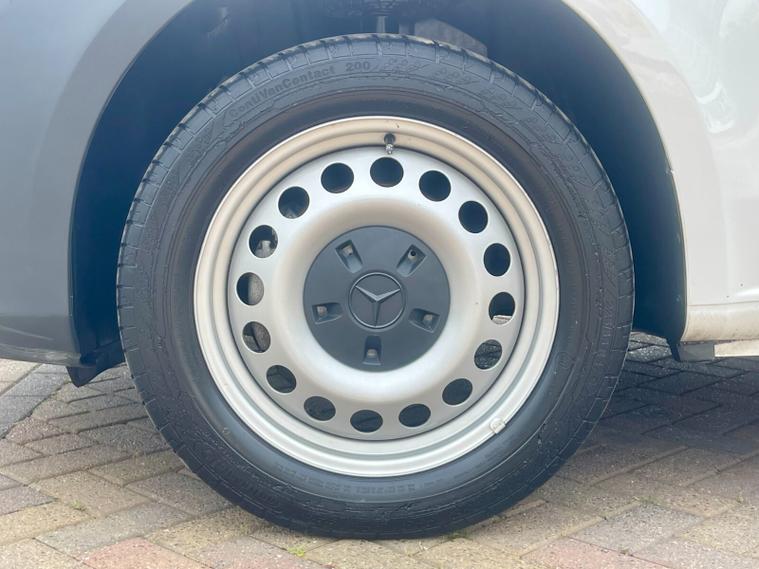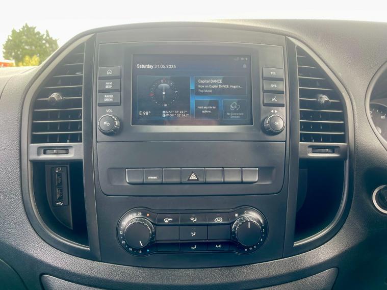 Inside, the eVito is thoughtfully equipped with air conditioning, cruise control, and Bluetooth connectivity, creating a comfortable and connected workspace. The rear load area is professionally prepared with a bulkhead, lining, internal racking, and a high-security lock, offering both durability and organisation for tools or goods.