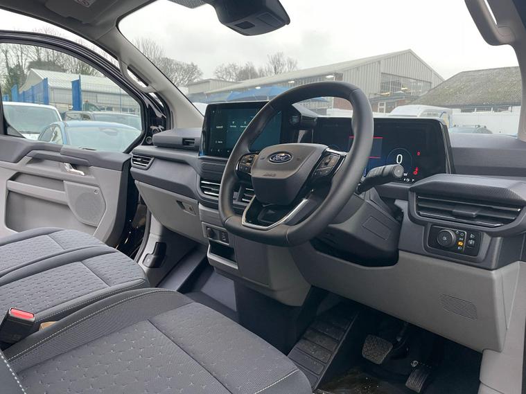 Boasting an incredibly low mileage of just 20 miles, this 2025 Ford Transit Custom 2.0 320 EcoBlue Limited Auto L1 H1 Euro 6 (s/s) 5dr represents a remarkable opportunity. As a single owner vehicle, this 320 Limited derivative comes with a powerful 134 bhp 2.0L EcoBlue diesel engine, meeting Euro 6 emissions standards. The Limited trim level ensures a host of desirable features, including fixed DSS LED headlamps with auto high beam, keyless entry for effortless access, and a comfort dual passenger seat pack with heated seats for enhanced driver and passenger comfort. Navigating tight spaces is made simple with the reversing camera pack, which includes front and rear parking sensors and a rear camera, complemented by automatic air conditioning for a pleasant cabin environment.