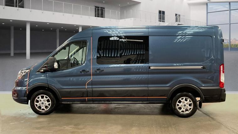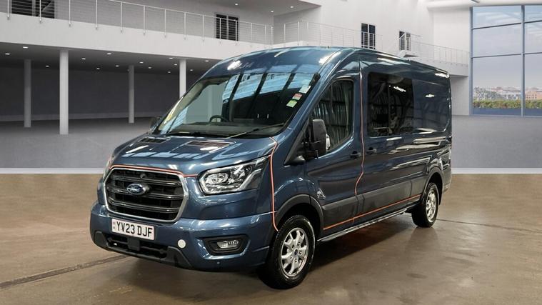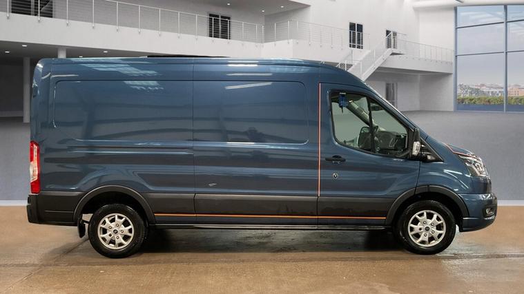 2023 (23 reg) Ford Transit 350 2.0 TDCi 170 BHP L3 H2 Limited EcoBlue, finished in Blue, offering a superb combination of power, space, and premium specification. As a Limited model, this Transit sits at the top end of the range, making it an excellent choice for businesses that want both strong performance and driver comfort.