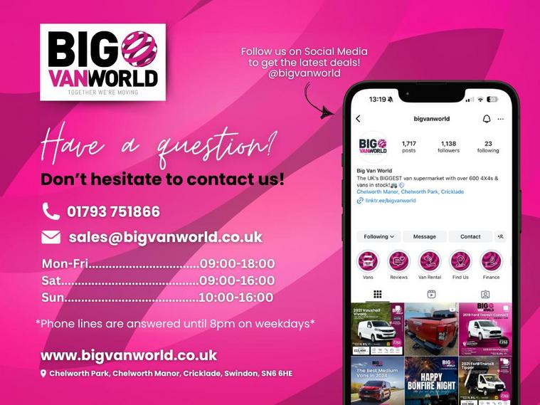 Inside, the cabin is equipped with air conditioning, cruise control, Bluetooth connectivity, DAB radio, electric mirrors and windows, and power assisted steering (PAS), creating a comfortable driving environment. A bulkhead and ply-lined load area help protect the rear, while the addition of a roof rack adds further practicality for carrying longer items.