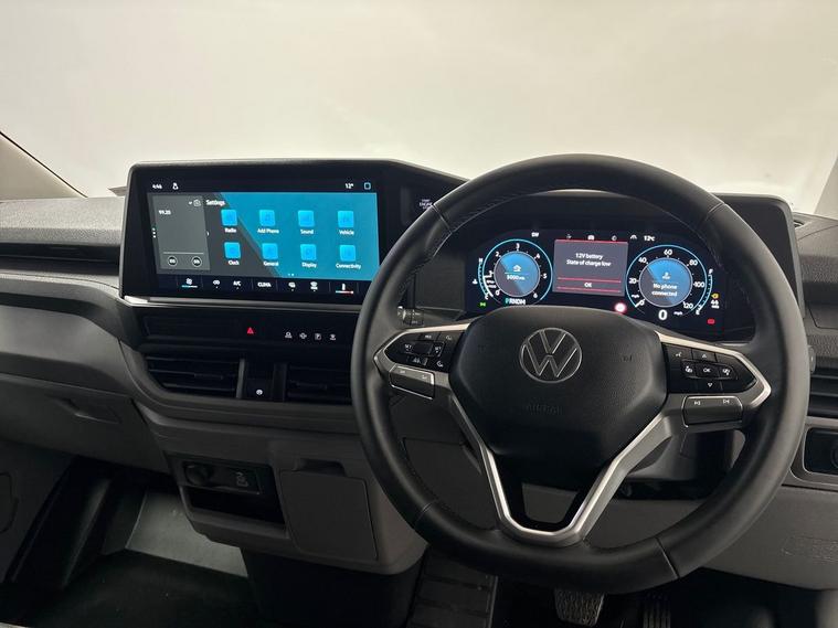 The Volkswagen Transporter delivers the perfect balance of power, practicality, and premium features. This Commerce Plus trim van is powered by an efficient 2.0 litre diesel engine, delivering a robust 148 bhp and meeting Euro 6 emission standards. Notable features include a selector lever conveniently located on the steering wheel, front and rear parking sensors integrated into the Parking Package Plus for enhanced maneuverability, and manual air conditioning in the cab to ensure comfort. The van is also equipped with LED headlights and separate LED daytime running lights for improved visibility.