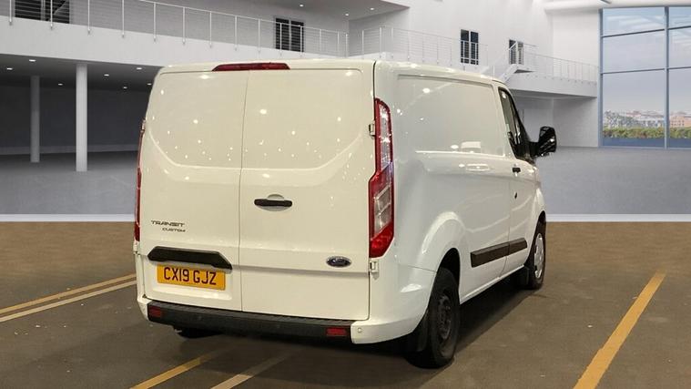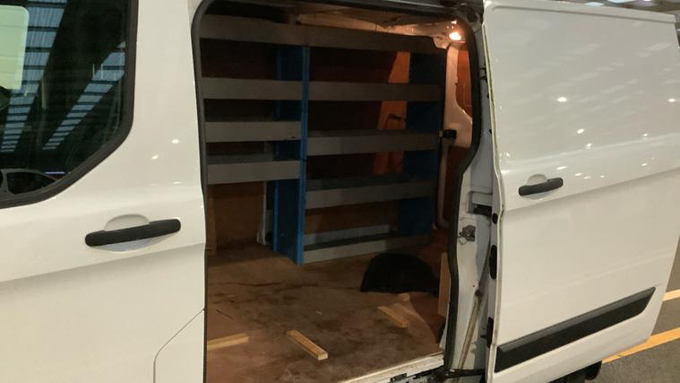 2019 19 reg Ford Transit Custom 280 2.0 Tdci 130 L1 H1 Trend finished in Frozen White with spec to include parking sensors, cruise control, bluetooth, bulkhead, ply lined, internal racking, auto headlights, front fog lights, electric mirrors & windows, dab, pas.