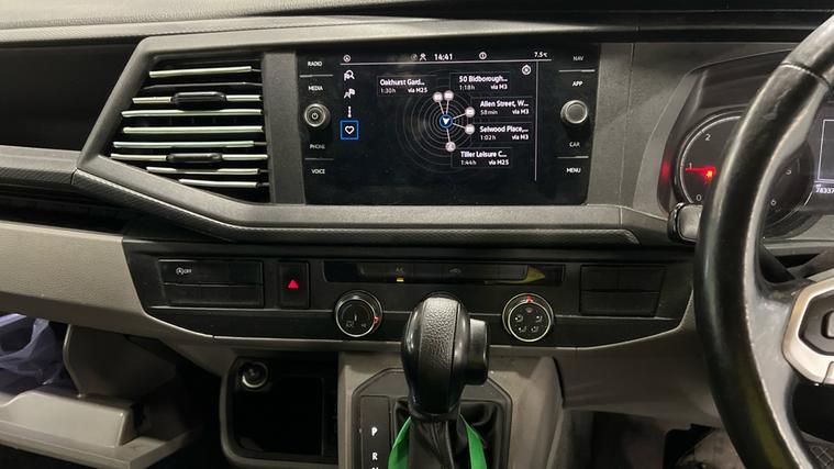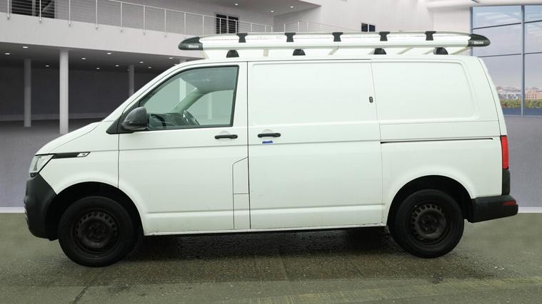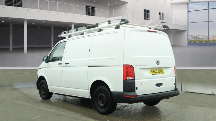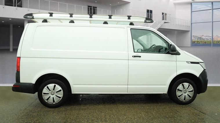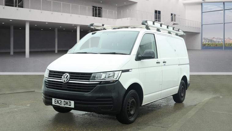 2021 21 reg Volkswagen Transporter T30 2.0 Tdi 150 bhp Startline swb low roof auto finished in White with spec to include parking sensors, sat nav, air con, bluetooth, bulkhead, high security lock, Rhino roof rack, electric mirrors & windows, dab, pas.