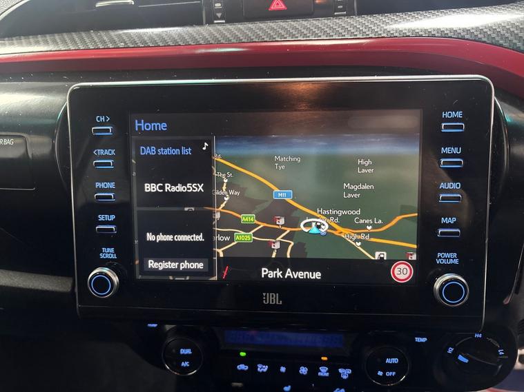 This 2023 Toyota Hilux GR SPORT is a standout example with only one owner from new and with exceptionally low mileage just 12860. This robust 4x4 pickup is powered by a capable 2.8 litre D-4D diesel engine, delivering 201 bhp and meeting Euro 6 emission standards. Its GR SPORT trim enhances its already impressive presence, and it is equipped for any task with a substantial 3500 kg towing weight.