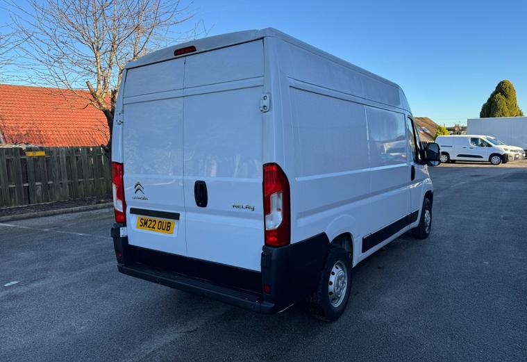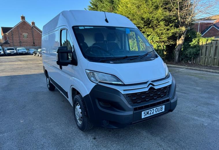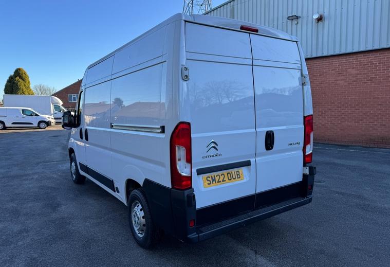 2022 22 reg Citroen Relay 35 2.2 Bluehdi 140 bhp L2 H2 Enterprise finished in White with parking sensors, sat nav, air con, cruise control, bluetooth, bulkhead, ply lined, electric mirrors & Windows, dab, pas.