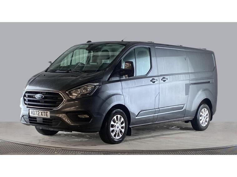 2023 72 reg Ford Transit Custom 300 2.0 Tdci 130 L2 H1 Limited Ecoblue finished in Metallic Magnetic Grey with spec to include alloy wheels, parking sensors, reverse camera, air con, heated seats, cruise control, bluetooth, bulkhead, ply lined, internal racking, auto headlights, front fog lights, electric mirrors & windows, dab, pas.