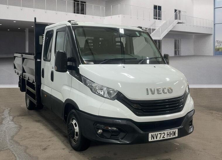 Iveco Daily 2.3 Crew Cab Chassis 3750 WB CREW CAB TIPPER, 2023 This 2023 Iveco Daily presents an exceptional ownership proposition, having been driven by only one owner from new and boasting a low mileage of just 26, 000 miles. This 2.3D HPI 14V 35C 3750 L3 Euro 6 (s/s) 4dr (DRW) model is equipped with a robust 2.3 litre diesel engine delivering a strong 134 bhp, ensuring ample power for your needs. It meets Euro 6 emission standards and comes with a towing weight capacity of 3500 kg, complemented by a towbar and 13 pin provision for towing. Connectivity is also a strong point, featuring a digital Bluetooth radio with app integration.