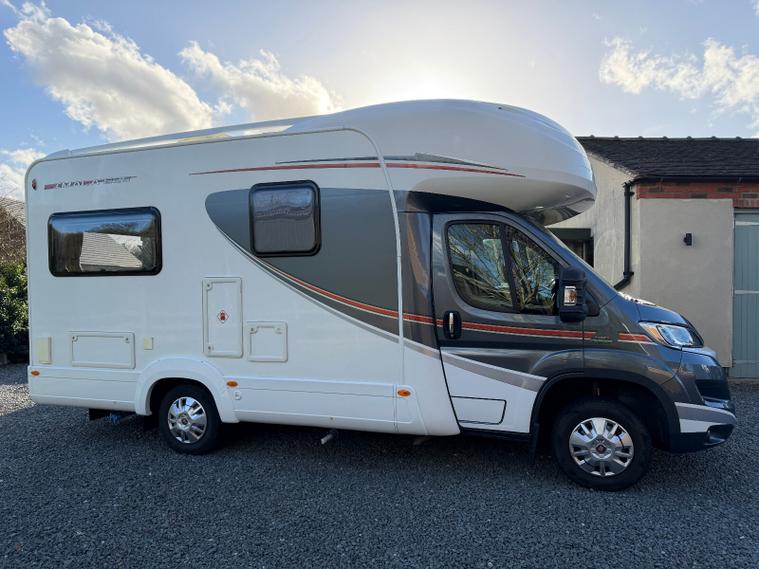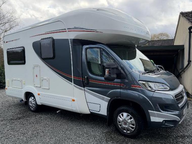 2015 15 Reg Auto-Trail Imala 625 Fiat Ducato 2.3D 6spd manual 4 berth. 21700 miles from new, recent cambelt and habitation check. Vast amounts of service history. Fitted Global Telemetrics Tracker (subscription required). Bike rack. External BBQ point. Towbar. Rear view camera. Rear lounge converts to large double bed. Double bed over cab accessed by ladder. Recent leisure battery. Microwave. Dual fuel cooker oven with separate grill, with 3x gas and 1x electric hob. Fitted Gaslow System. Solar panel. TV aerial. Lounge TV bracket. Wind out Fiamma awning. Needs to be viewed to be appreciated. Excellent condition. Ready to use. (VX15BXK).