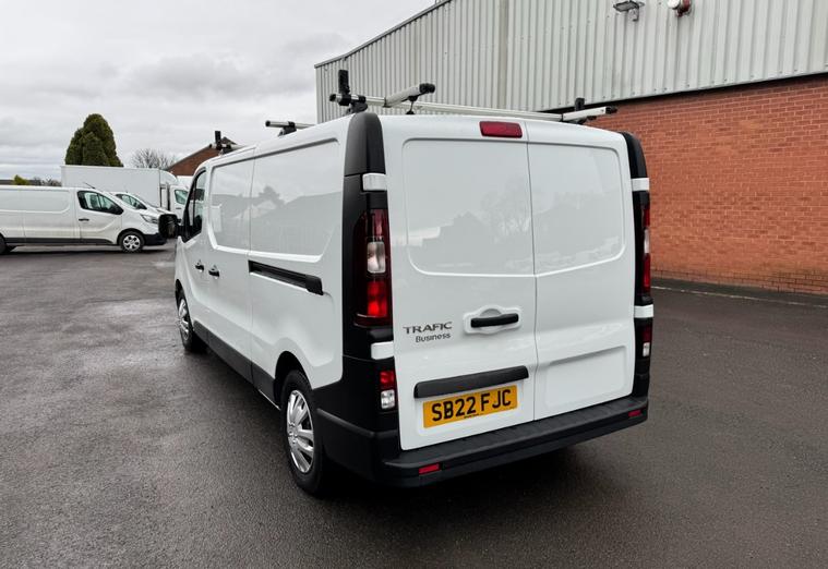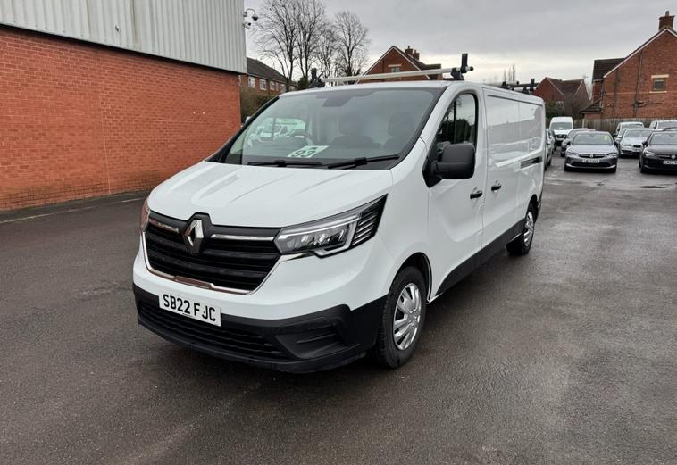 2022 (22 reg) Renault Trafic LL30 2.0 DCI 150 Business LWB Low Roof, finished in White, offering a practical long wheelbase van with strong performance and a spacious load area, ideal for a wide range of trade and business applications.