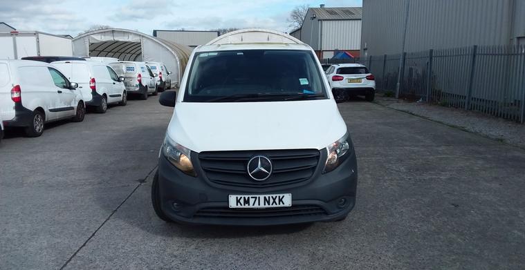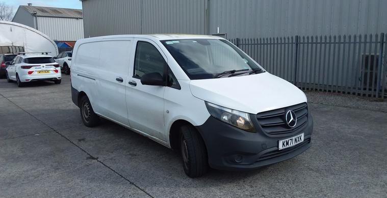 2021 71 reg Mercedes Vito 116 2.0 Cdi 163 bhp L3 H1 Progressive 9G-Tronic Auto finished in Arctic White with spec to include reverse camera, cruise control, bluetooth, bulkhead, ply lined, auto headlights, front fog lights, electric mirrors & windows, pas.