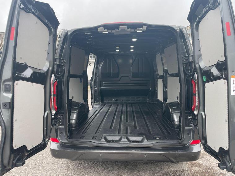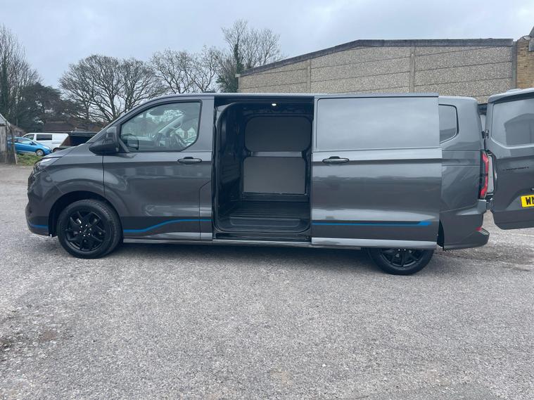 This 2025 Ford Transit Custom Sport van boasts a single owner from new, offering excellent provenance. It features a powerful 2.0 litre 168 bhp EcoBlue diesel engine, meeting Euro 6 emissions standards. The Sport trim level includes desirable features such as keyless entry, fixed LED headlamps with auto high beam, and a comfort plus dual passenger seat pack with heating. For enhanced convenience and safety, it is equipped with a reversing camera pack, front and rear parking sensors, and dual zone automatic air conditioning.