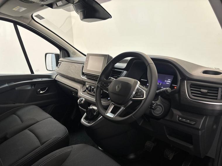 It comes loaded with advanced safety features including a comprehensive driver assistance such as ESC with hill start assist, active emergency braking, automatic high‑beam, a rear camera, and full 360° parking sensors. With cruise control, a 6‑speed gearbox, tyre pressure monitoring, and ABS with EBD, it delivers a confident and effortless driving experience. Inside, the Trafic offers impressive practicality with its climate control, height‑adjustable driver’s seat with lumbar support, and an 8” Easy Link touchscreen with connected navigation and Bluetooth.