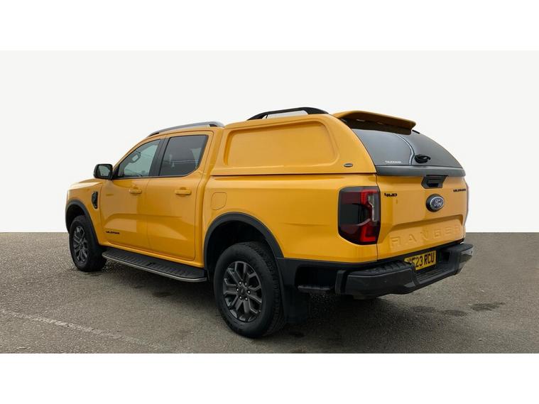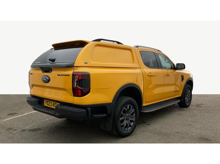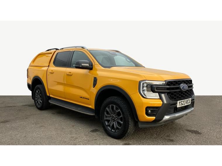 2023 23 reg Ford Ranger 2.0 TD 205 bhp Wildtrak Ecoblue 4WD Double Cab auto finished in Metallic Cyber Orange wiyj spec to include alloy wheels, truckman top, load liner, parking sensors, reverse camera, sat nav, air con, leather seats, heated seats, electric drivers seat, cruise control, bluetooth, auto headlights, electric mirrors & windows, dab, pas.