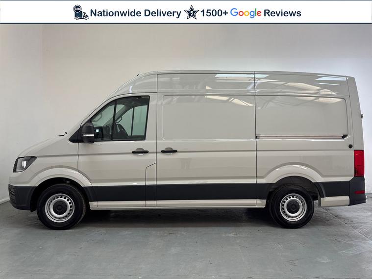 The Volkswagen Crafter is built for businesses that need serious capability without sacrificing comfort. Powered by a refined 2.0L TDI diesel engine paired with a smooth automatic transmission, it delivers dependable performance whether navigating city routes or covering long motorway distances. The front‑wheel‑drive layout maximises traction and efficiency, while the high‑roof MWB body provides generous load volume with load length of approx. 3, 450 mm., and excellent standing height, making it ideal for couriers, trades, and operators who rely on easy access and maximum usable space.