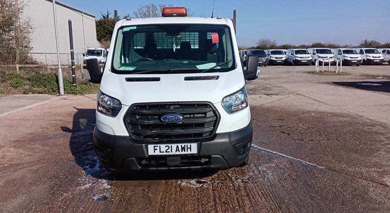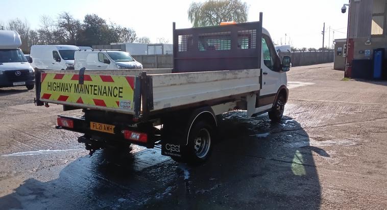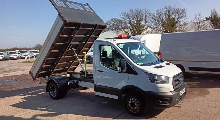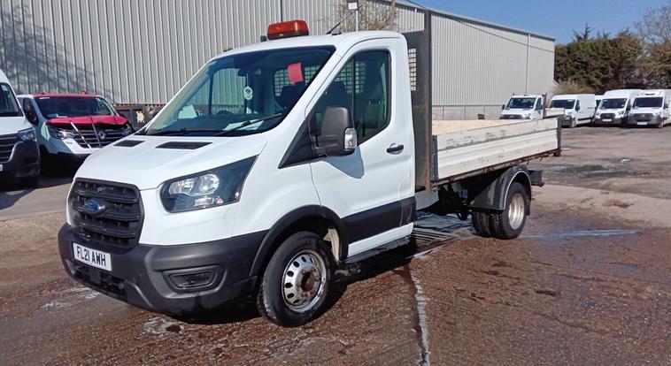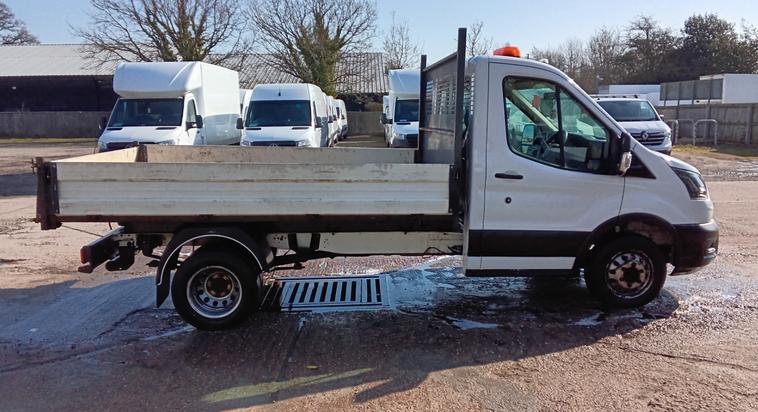 2021 21 reg Ford Transit 350 2.0 Tdci 130 bhp L2 Leader Ecoblue Lwb Single Cab Alloy Tipper finished in Frozen White with spec to include bluetooth, tow bar, electric windows, dab, pas.
