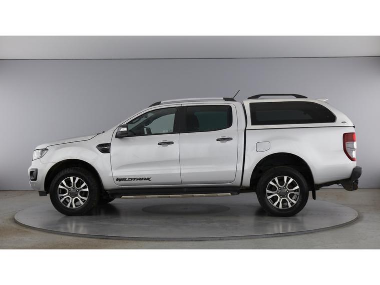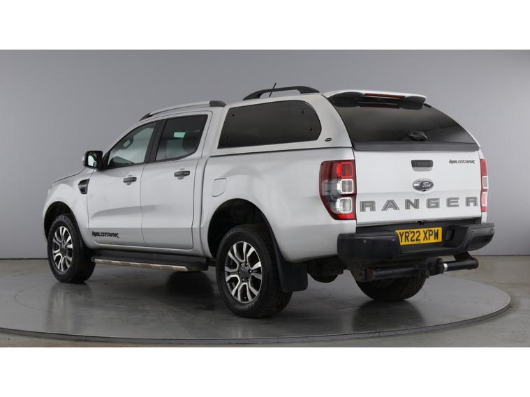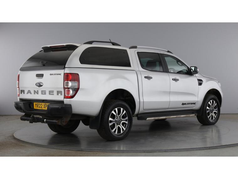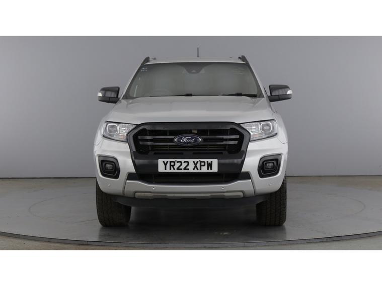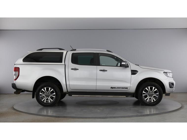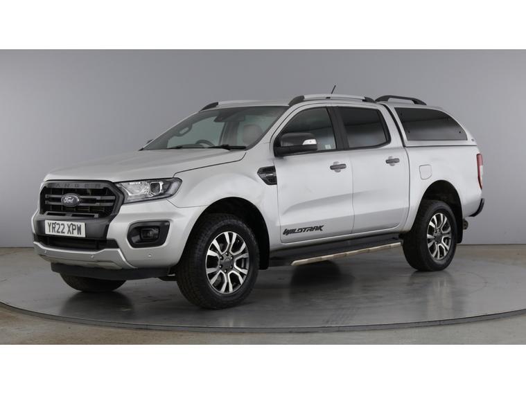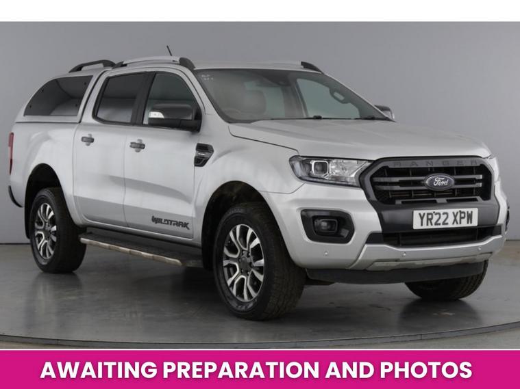 2022 22 reg Ford Ranger 2.0 Tdci 213 bhp Wildtrak Ecoblue 4WD Double Cab auto finished in Metallic Moondust Silver with spec to include alloy wheels, truckman top, load liner, parking sensors, reverse camera, sat nav, air con, leather seats, heated seats, eectric drivers seats, cruise control, bluetooth, tow bar, auto headlights, front fog lights, electric mirrors & Windows, dab, pas.