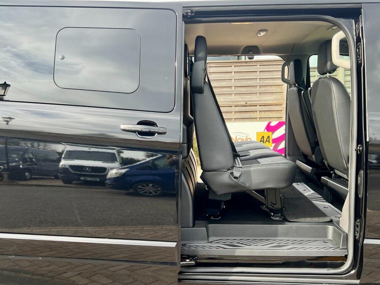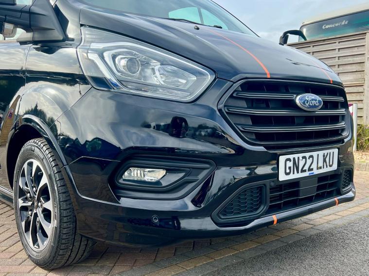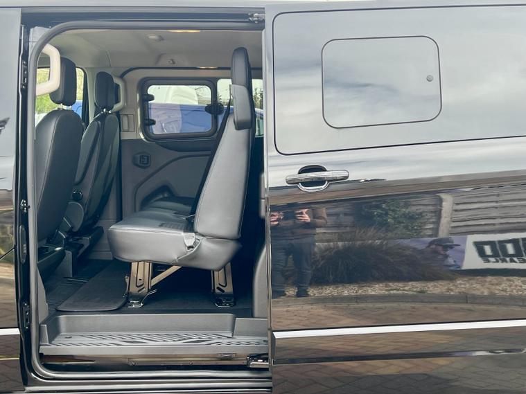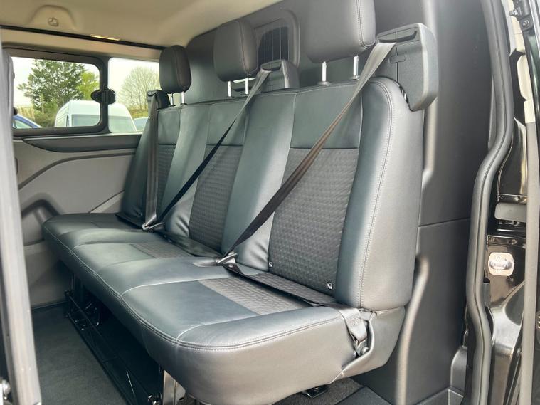 2022 (22 reg) Ford Transit Custom 320 2.0 TDCi 185 BHP L2 H1 Sport EcoBlue Double Cab (5 Seats), finished in Shadow Black, offering a superb blend of performance, practicality and sporty styling. The L2 double cab configuration provides seating for five while still retaining a versatile load area, making it ideal for both work and crew transport.