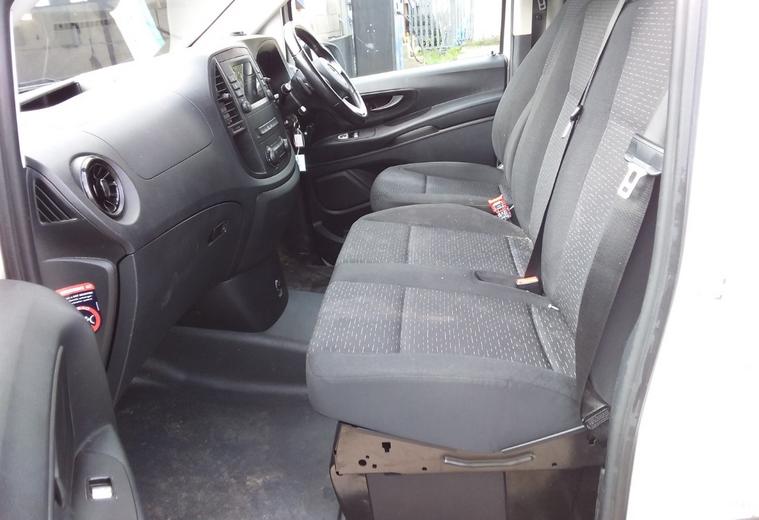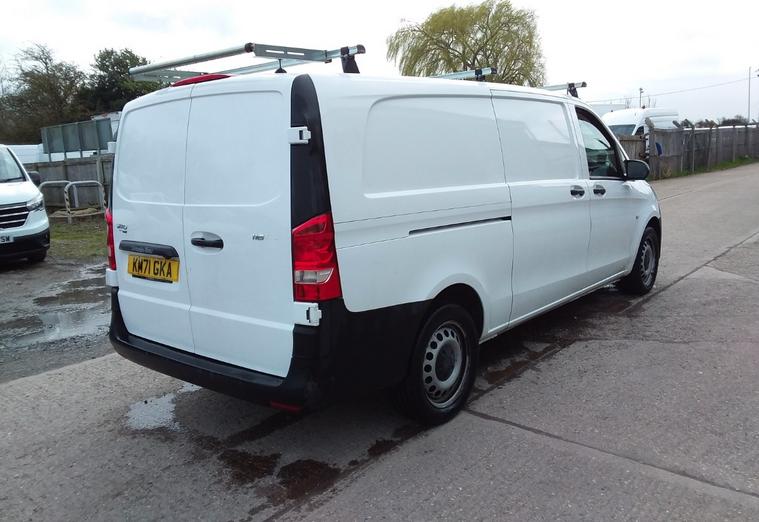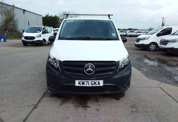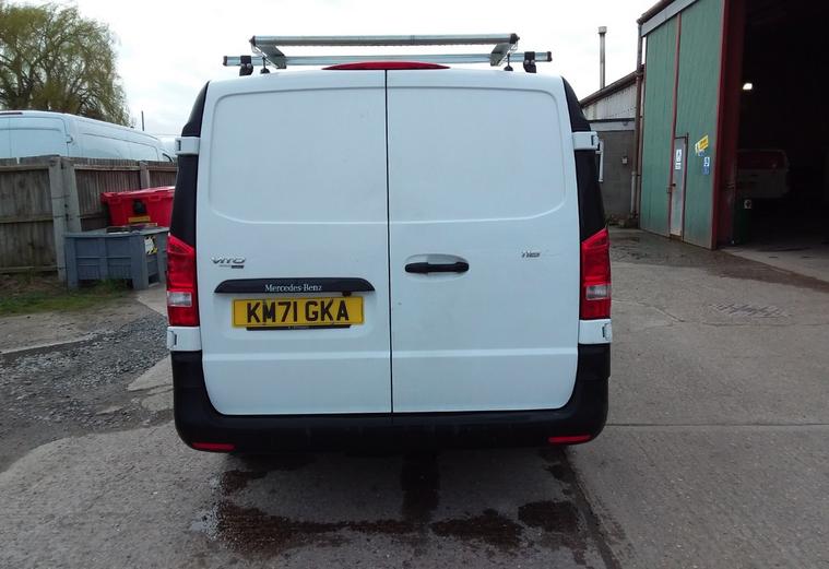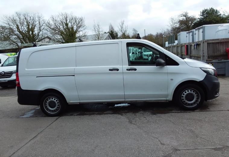 2021 71 reg Mercedes Vito 116 2.0 Cdi 163 bhp L3 H1 Progressive 9G-Tronic Auto finished in Arctic Whitw with spec to include reverse camera, multi function steering wheel, cruise control, bluetooth, bulkhead, ply lined, auto headlights, front fog lights, electric mirrors & windows, dab, pas.