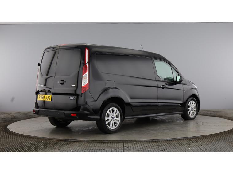 2019 68 reg Ford Transit Connect 240 1.5 Tdci 120 bhp L2 H1 Limited Ecoblue finished in Shadow Black with spec to include alloy wheels, parking sensors, air con, heated drivers seat, cruise control, bluetooth, bulkhead, ply lined, auto headlights, front fog lights, electric mirrors & windows, dab, pas.