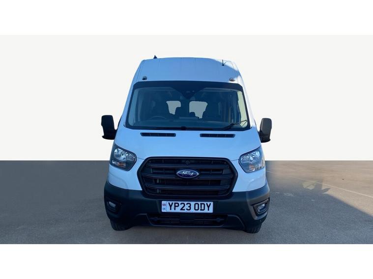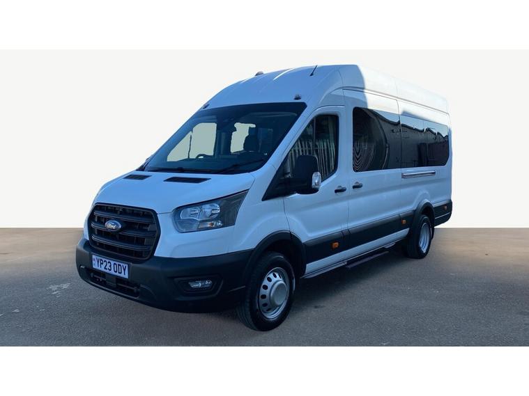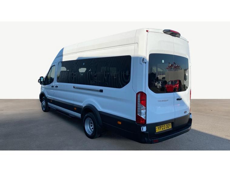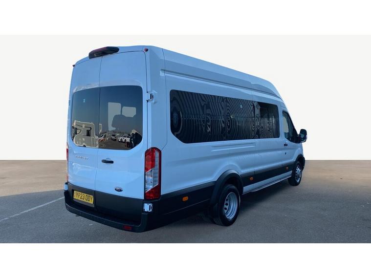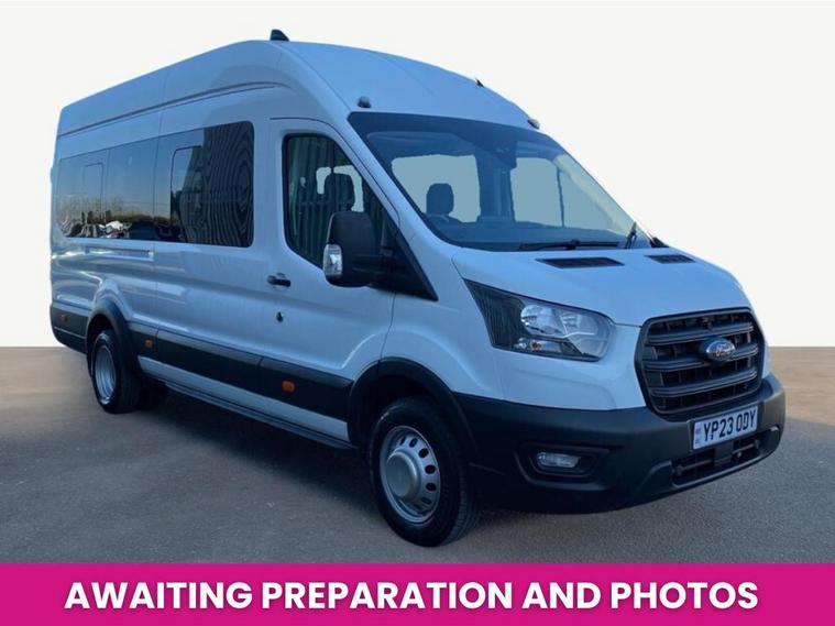 2023 23 teg Ford Transit 460 2.0 Tdci 170 L4 H3 Trend Ecoblue 17 Seats Minibus finished in Frozen White with spec to include parking sensors, overhead storage, air con, cruise control, bluetooth, auto headlights, front fog lights, electric mirrors & windows, dab, pas.