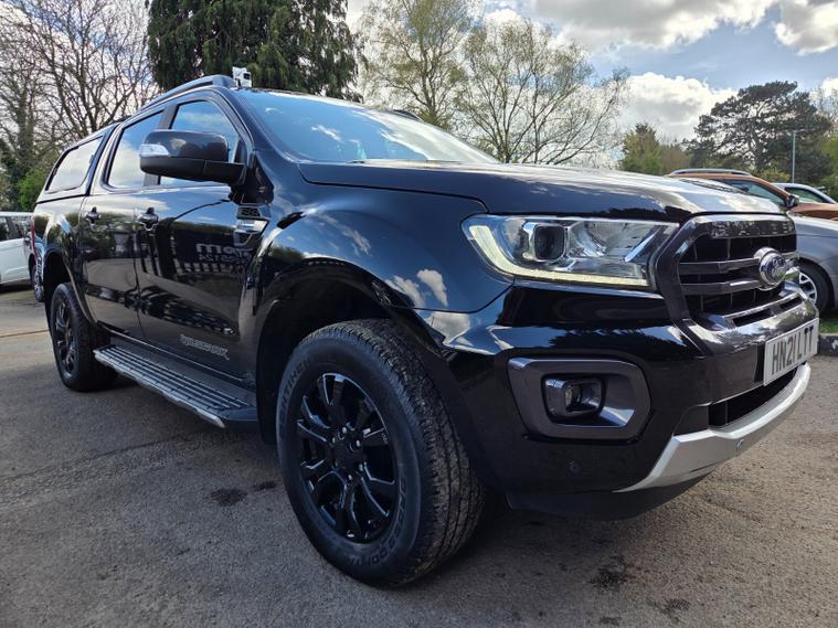 Ford Ranger Pick Up Double Cab Wildtrak 2.0 EcoBlue 213 Auto 2021/21 SUPERB LOW MILEAGE WILDTRAK IN METALIC BLACK WITH BLACK LEATHER. HARDTOP CANOPY, JUST HAD 4TH SERVICE WITH NEW MOT.