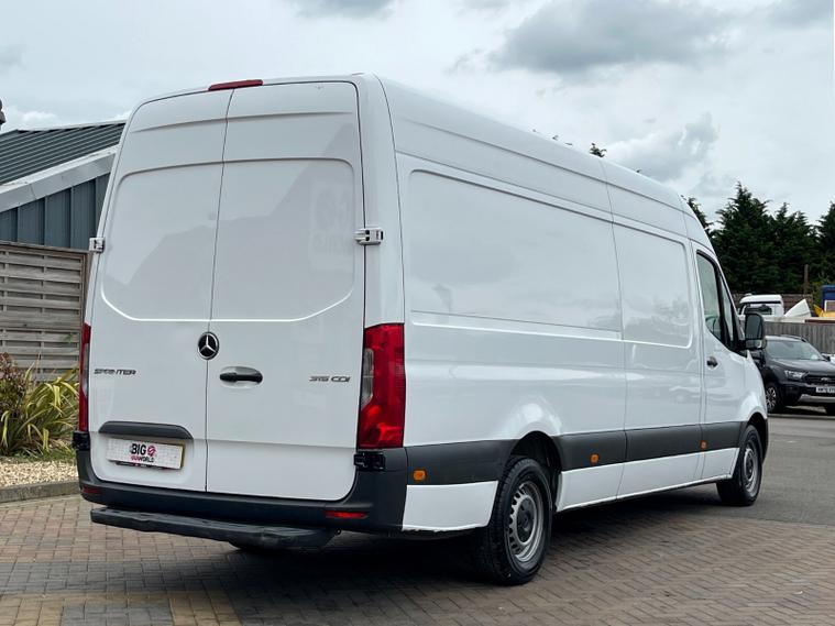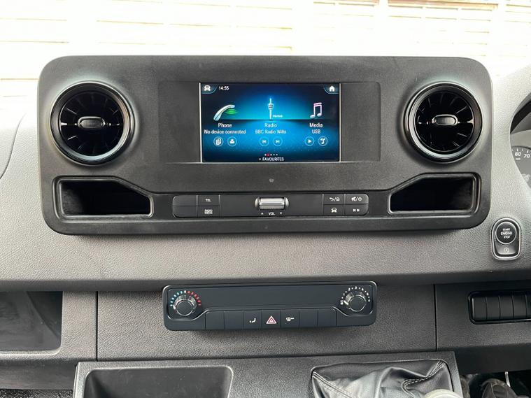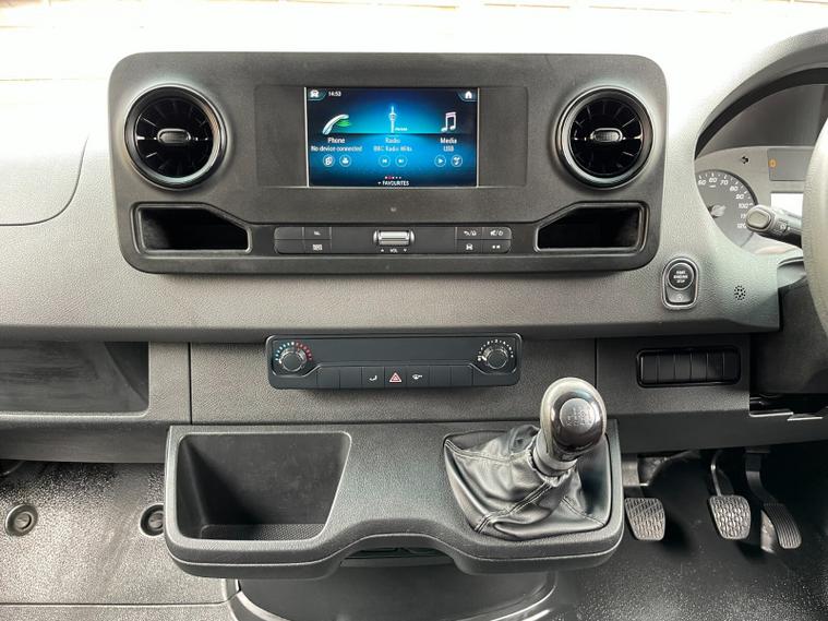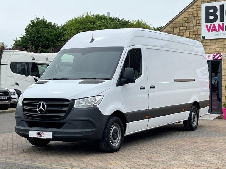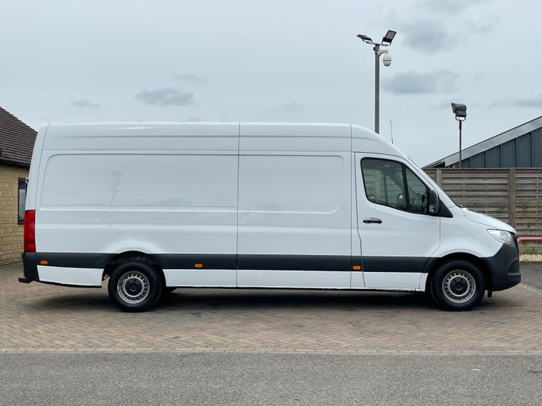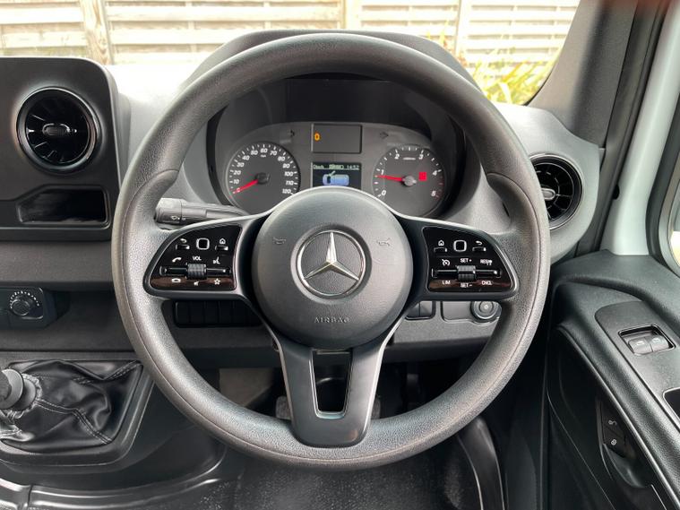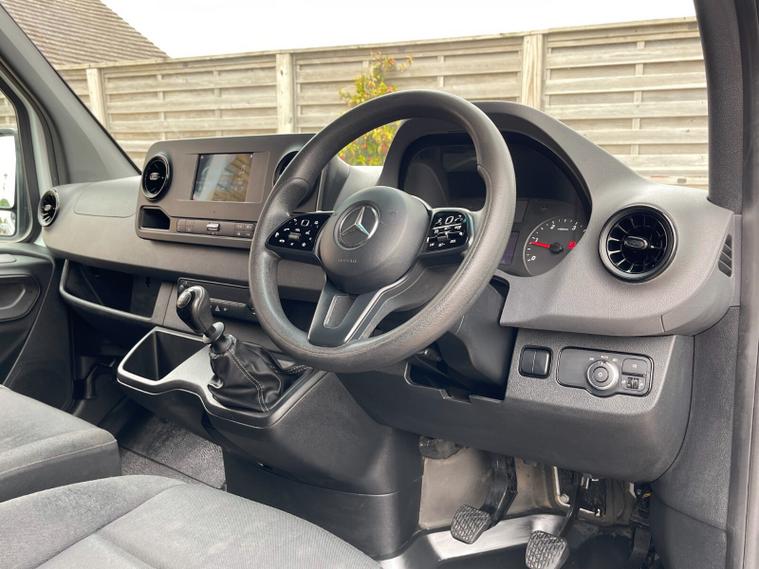 2023 73 reg Mercedes Sprinter 315 2.0 Cdi 150 bhp L3 H2 Progressive finished in Arctic White with spec to include multi function steering wheel, cruise control, bluetooth, bulkhead, ply lined, auto headlights, electric windows, dab, pas.
