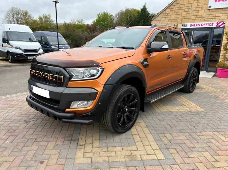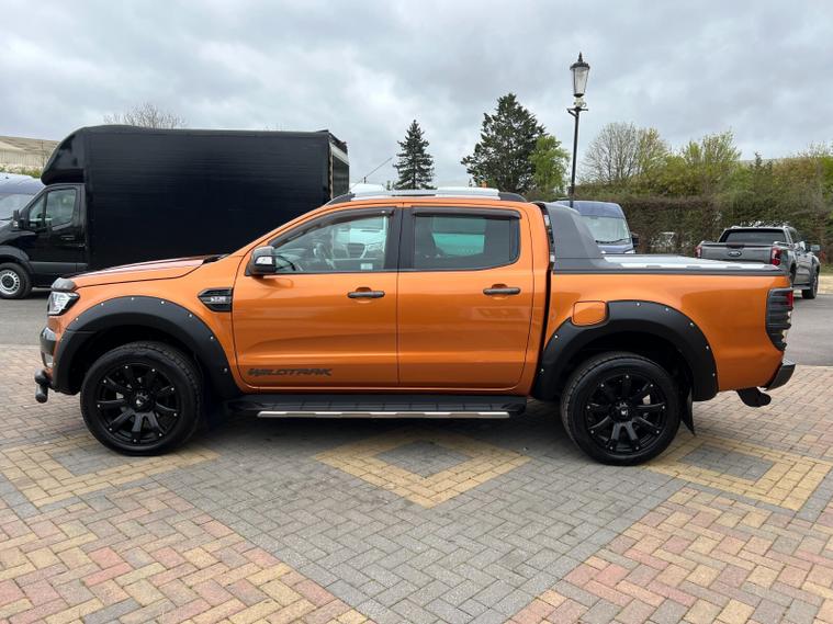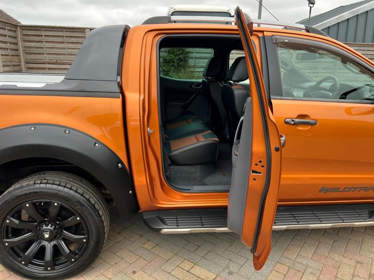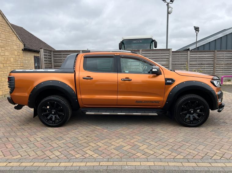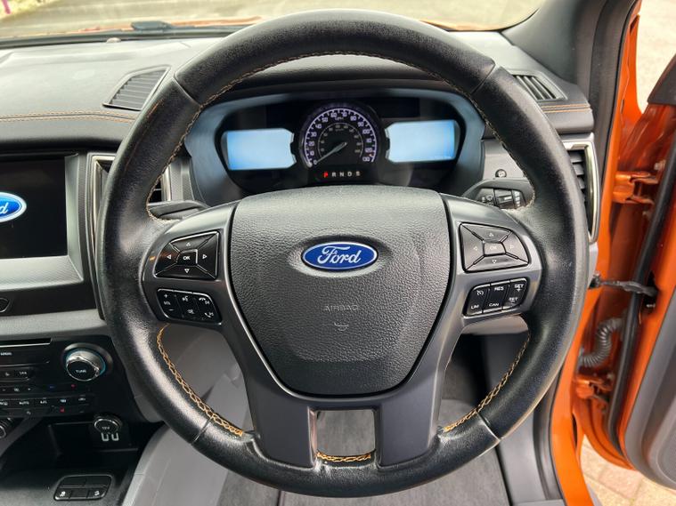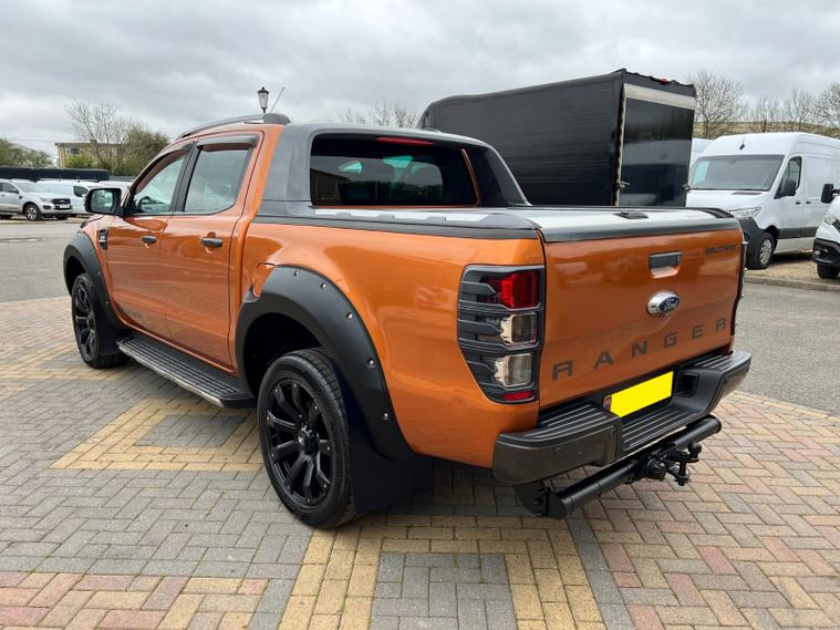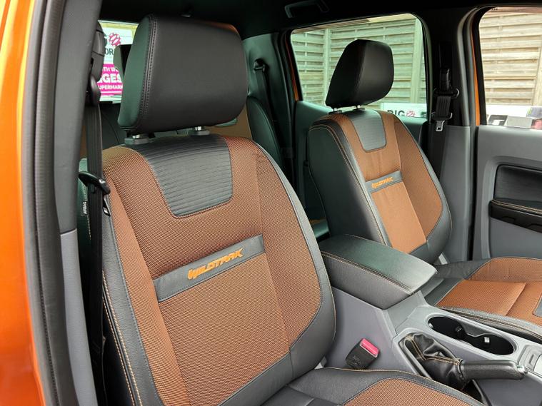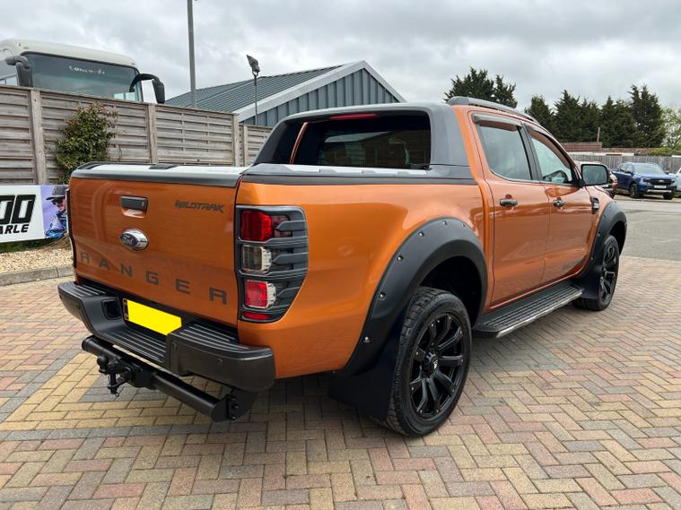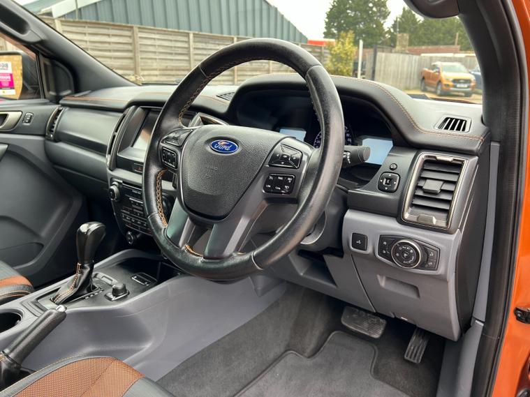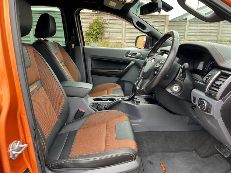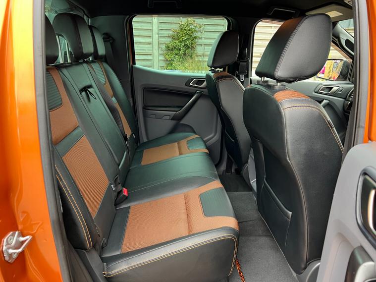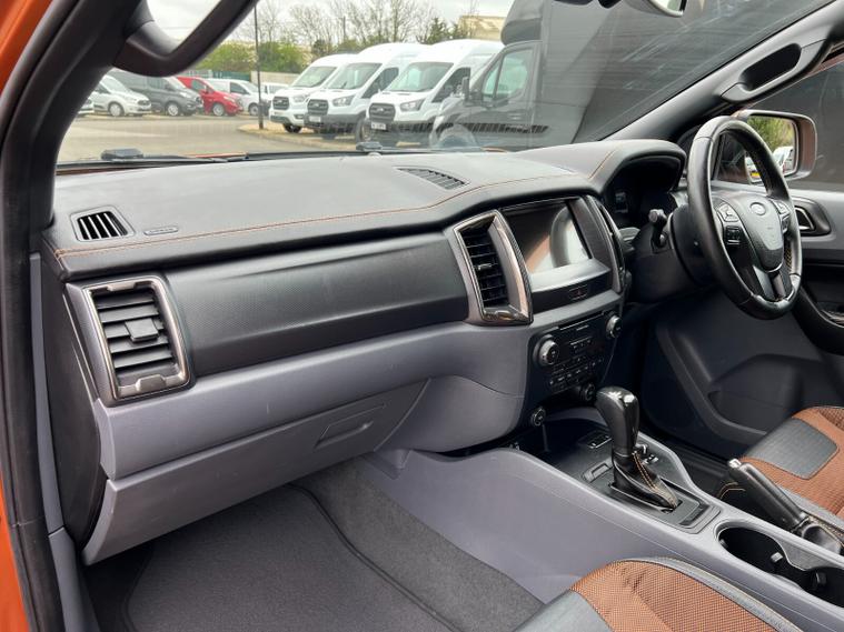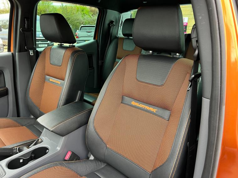 2019 68 reg Ford Ranger 3.2 Tdci 200 bhp Wildtrak 4WD Double Cab Auto finished in Orange with spec to include alloy wheels, roll'n'lock top, load liner, parking sensors, reverse camera, sat nav, air con, heated seats, electric drivers seat, cruise control, bluetooth, tow bar, auto headlights, front fog lights, electric mirrors & windows, dab, cd player, pas.