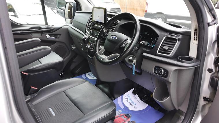 2021/21 FORD TRANSIT CUSTOM 300 ACTIVE ECOBLUE L1 SWB EURO 6 DIESEL VAN IN SILVER, 1 OWNER FROM NEW, SERVICE HISTORY, WETBELT REPLACED, SAT NAV, AIR CONDITIONING, FRONT AND REAR PARKING SENSORS, HEATED BLACK HALF LEATHER SEATS, ELECTRIC DRIVERS SEAT, SIDE STEPS, ROOF RAILS, CRUISE CONTROL, ELECTRIC WINDOWS, ELECTRIC FOLDING MIRRORS, ALLOY WHEELS, HEATED WINDSCREEN, 2 SEAT CAB, SIDE LOADING DOOR, PLY LINED, AIRBAG, REMOTE CENTRAL LOCKING, SECURITY DRILL PLATE, TOUCH SCREEN DAB RADIO WITH BUILT IN BLUETOOTH PHONE CONNECTION, GOOD CONDITION THROUGHOUT, 77.000 MILES, A FREE 3 MONTHS WARRANTY WITH THE OPTION TO EXTEND, GREAT FIXED RATE FLEXIBLE FINANCE AVAILABLE, ALL MAJOR DEBIT/CREDIT CARDS ACCEPTED., ALL PRICES ARE PLUS VAT AT 20%