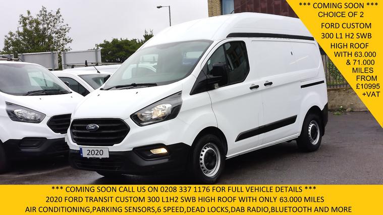 *** COMING SOON CHOICE OF 2 FROM £10995+VAT *** 2022/71 FORD TRANSIT CUSTOM 300 L1 H2 SWB HIGH ROOF IN WHITE WITH 63.000 MILES AND 71.000 MILES, 1 OWNER FROM NEW, TIMING BELT/WETBELT TO REPLACED, FULL SERVICE HISTORY, AIR CONDITIONING, FRONT AND REAR PARKING SENSORS, CRUISE CONTROL, ELECTRIC WINDOWS, ELECTRIC MIRRORS, HEATED WINDSCREEN, 3 SEAT CAB, SIDE LOADING DOOR, PLY LINED, AIRBAG, REMOTE CENTRAL LOCKING, TOUCH SCREEN DAB RADIO WITH BUILT IN BLUETOOTH PHONE CONNECTION, GOOD CONDITION THROUGHOUT, A FREE 3 MONTHS WARRANTY WITH THE OPTION TO EXTEND, GREAT FIXED RATE FLEXIBLE FINANCE AVAILABLE, ALL MAJOR DEBIT/CREDIT CARDS ACCEPTED., ALL PRICES ARE PLUS VAT AT 20%