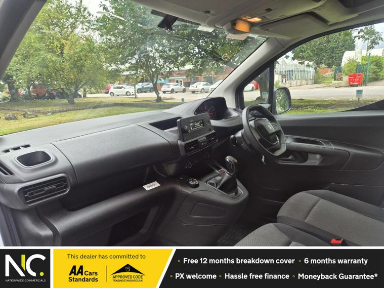 Here at Nationwide Commercials Ltd, we are excited to offer this fantastic Peugeot Partner 1.5 BlueHDi 1000 Grip Standard Panel Van! This 2021 model is not just a vehicle; it's a reliable partner for your business needs, boasting a striking white exterior that exudes professionalism. With a spacious interior designed to comfortably seat three, this panel van is perfect for those who require both functionality and comfort on the road.