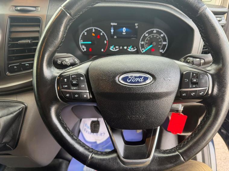 Air conditioning, touchscreen Ford DAB audio with Bluetooth and USB connectivity, cruise control, auto headlights, electric windows with electrically adjustable and folding door mirrors, front fog lights, front and rear parking sensors, tow bar, double sliding side doors, and a practical load area ideal for trades and business use.