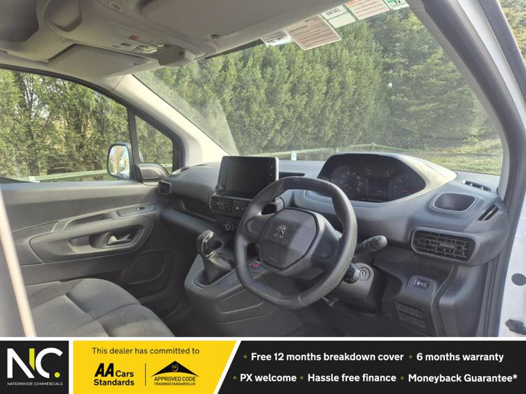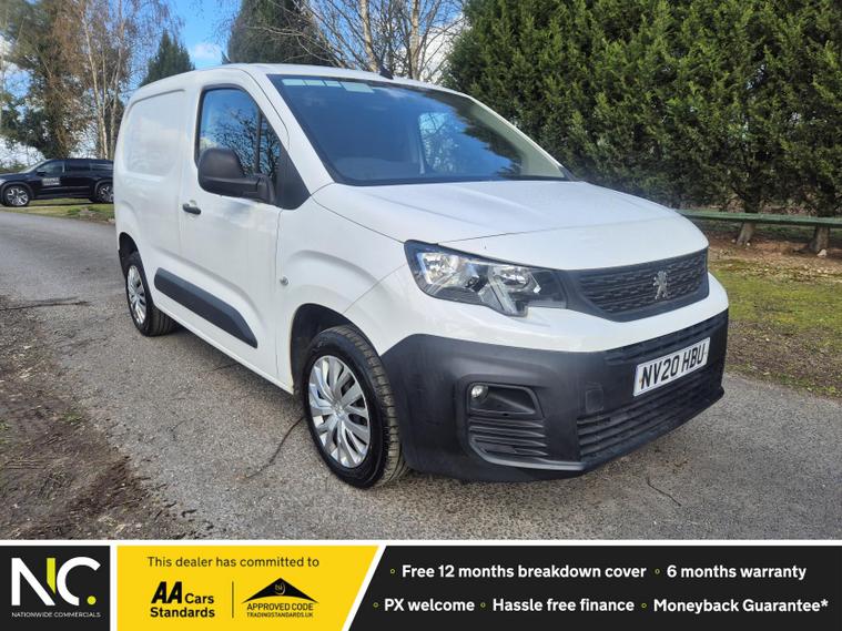 Introducing the Peugeot Partner 1.5 BlueHDi 1000 Professional Standard - a versatile and reliable panel van designed to meet the demands of modern businesses. This 2020 model, finished in a sleek white, boasts a robust diesel engine that delivers an impressive 100 bhp and 184 lbs/ft of torque, ensuring you have the power you need for any job. With a manual transmission and front-wheel drive, this vehicle offers a smooth and responsive driving experience.