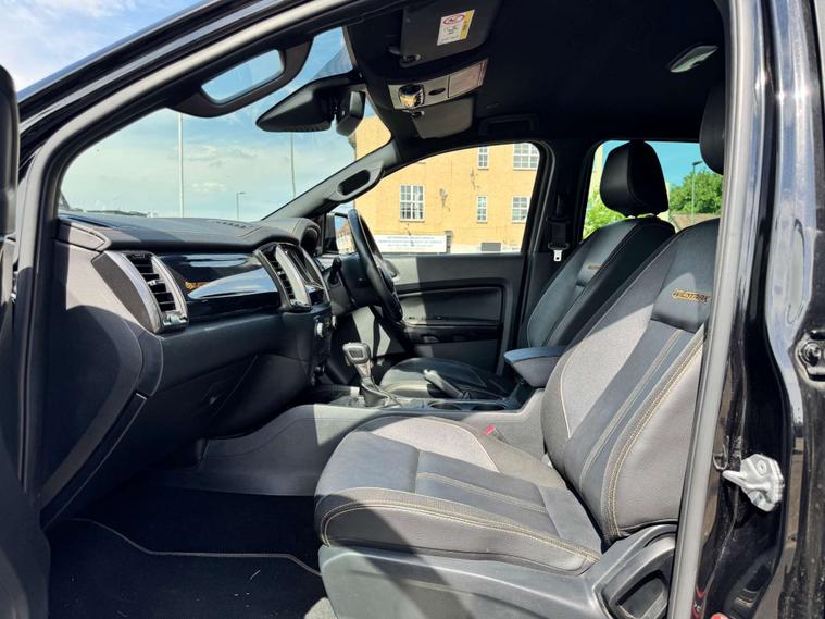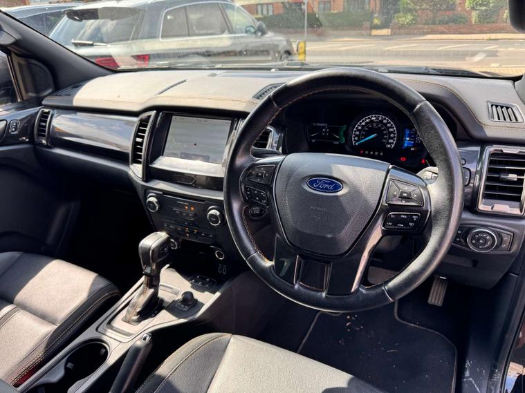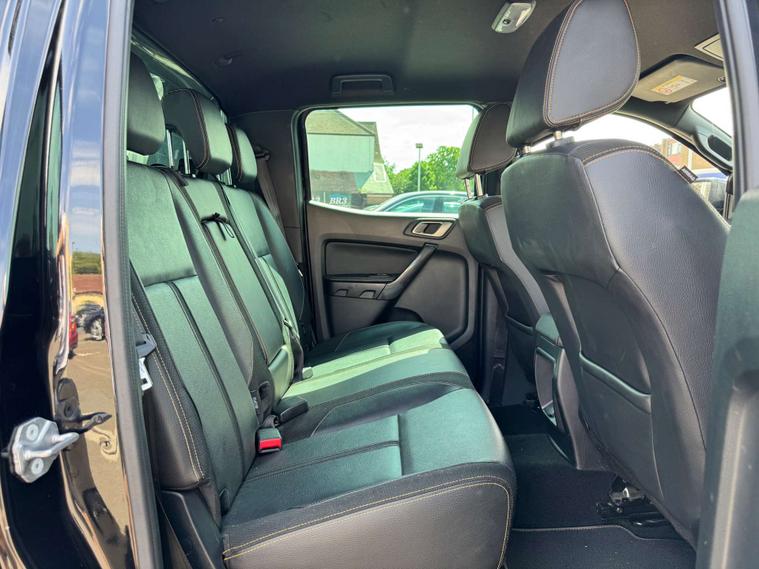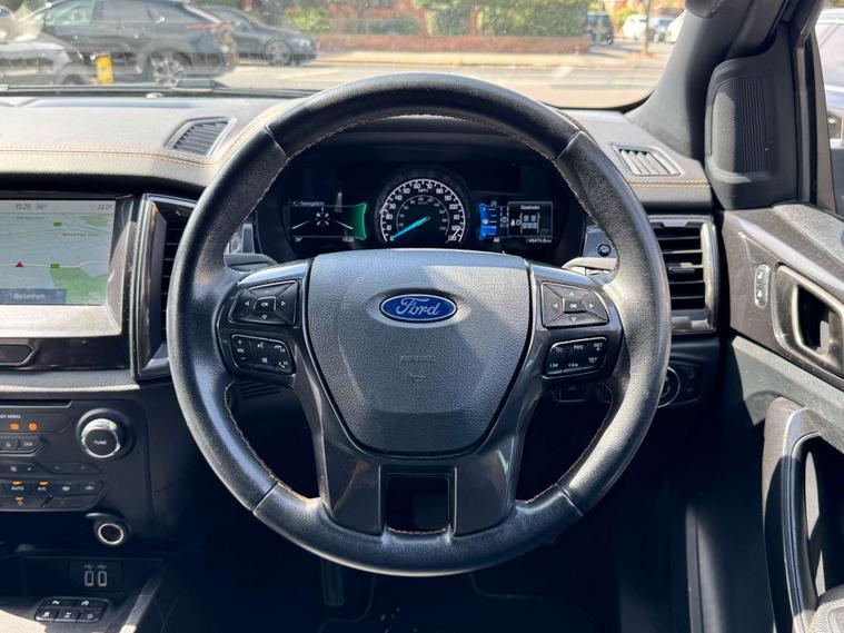 Finished in a sleek Agate Black, the Ford Ranger exudes sophistication and strength, making it the perfect companion for both urban and off-road escapades. Its striking 18-inch alloy wheels, fully painted in Boulder Grey-Machined, add a touch of rugged elegance to its commanding presence.