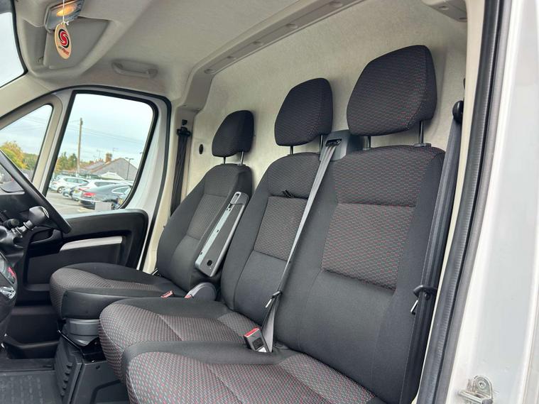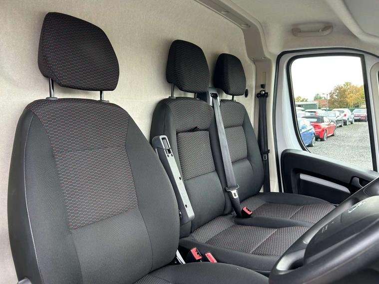This 2022 Peugeot Boxer 2.2 BlueHDi 335 Professional L3 H2 Euro 6 (s/s) 5dr boasts a clear vehicle history and has had only one owner from new, with its MOT valid until June 2026. This professional trim van is equipped with a 2.2 litre diesel engine and meets Euro 6 emission standards. Inside the cab, you'll find manual air conditioning for a comfortable journey, and the Touch Screen Navigation Pack includes Bluetooth connectivity for seamless communication and entertainment.
