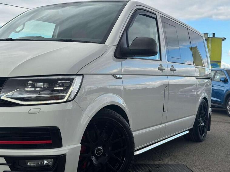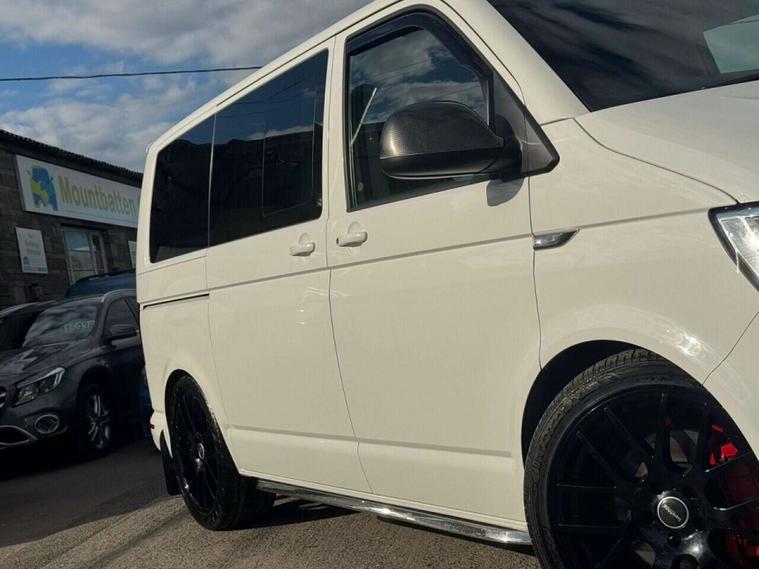 Mega high spec with genuine SPORTLINE body kit fitted by VW by dealer, Heated Leather, Split Charge with Leisure Battery, Websto Desiel Heater, Twin sliding door, 20' Alloy wheels, Bilstein Coil Overs, Full service history including cambelt and DSG gearbox service, upgraded speakers with under seat sub, LED front and rear lights, High beam assist. Towbar, ULEZ, Side windows have curtains, Passenger swivel captain seat, California tailgate rear deck chairs and loads more. At Mountbatten Car Sales all our vehicles come fully prepared to the highest standard with our peace of mind Guarantee. This includes having any tyre replaced that has less than 3mm tread depth (legal limit is 1.6mm), minimum 6 months MOT and at least 6 months or 6, 000 miles till your next service. All vehicles offered are HPI clear (to check there is no outstanding finance or prior accidents) and provided with a full Government VOSA report to verify the mileage. Nationwide delivery is available, so call today to arrange a test drive and let one of our professional sales executives give you the Mountbatten Experience. Due to our high stock turnover, we recommend leaving a holding deposit