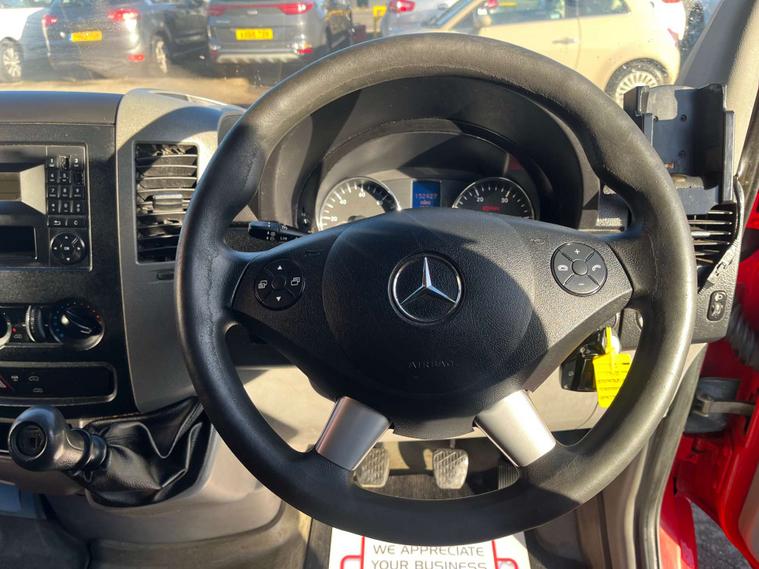 Finished in a vibrant red, this Sprinter not only stands out on the road but also reflects the premium quality and attention to detail that Mercedes-Benz is famous for. The interior is designed with comfort and practicality in mind, featuring ergonomic seating and intuitive controls to enhance your driving experience.