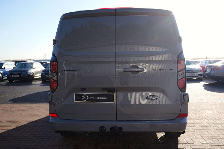 Finished in a sleek Grey, the Ford Transit Custom exudes sophistication and modernity. Its striking 17-inch Alloy Wheels with a Twin-Spoke design in Carbonised Grey add a touch of elegance, while the Fixed Trailer Coupling ensures you're always ready for the next big job.