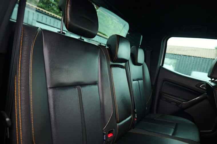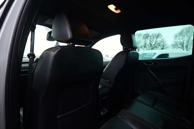The Ford Ranger's Trailer Tow Pack makes towing a breeze, offering you the capability to haul with confidence. Inside, you'll find Journey Grain Partial Leather seats in a sophisticated Ebony finish, providing both comfort and style for every journey.