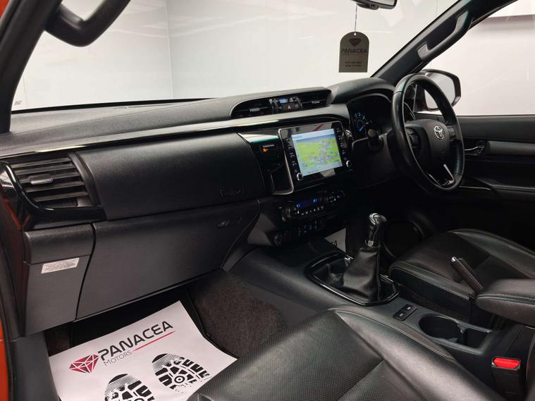 REF : TOYOTA HILUX 2.8 D-4D INVINCIBLE X PICKUP DOUBLE CAB 4DR DIESEL MANUAL 4WD EURO 6 204 BHP FINISHED IN INDIVIDUAL ORANGE WITH FULL BLACK LEATHER INTERIOR. THIS HIGH SPECIFICATION EXAMPLE BOASTS A FULL SERVICE RECORD AND ONLY 1 OWNER FROM BRAND NEW EQUIPPED WITH OVER £10K OF FACTORY EXTRAS WHICH INCLUDES | 2 KEYS | FRONT HEATED SEATS | REAR HEATED SEATS | FIXED TOWBAR | MULTICOLOURED AMBIENT LIGHTING | 360 REVERSE CAMERA | FRONT AND REAR PARKING SENSORS | ELECTRIC FRONT SEATS | LANE ASSIST | SIDE STEPS | APPLE CAR PLAY | ANDROID AUTO | CRUISE CONTROL | BRAND NEW18INCH LANDSALE TYRES ALL AROUND | PRIVACY GLASS | NAVIGATION | DAB RADIO | A RARE FIND IN THIS SPECIFICATION AND PRICE. Further to this all vehicles are provided with a comprehensive AA Dealer Care Extended Guarantee and Full AA Roadside, Recovery and Home Start & Onward travel (where not covered under the manufactures own warranty). HPI checks are carried out making sure all cars are clear from any concern, offering you total piece of mind. Every vehicle's mileage is fully guaranteed as genuine. Included with your purchase you will receive a minimum of 6 months Warranty with the option to extended and tailor your package at the time of purchase. Our vehicles are supplied fully valeted to the highest standards and include up to date servicing with a minimum of 9 months MOT. We are regulated by the FCA and can provide a range of flexible finance options, tailoring a package to your needs. We aim to a make the numbers work for you, including 0% deposit deals! We also offer a selection of other products for our customers to protect their investment. These include Williams Ceramic coating, insurance backed policies to protect your investment from financial loss and protection to cosmetic damage. To avoid disappointment please call 01616237517 to arrange a test drive before travelling.