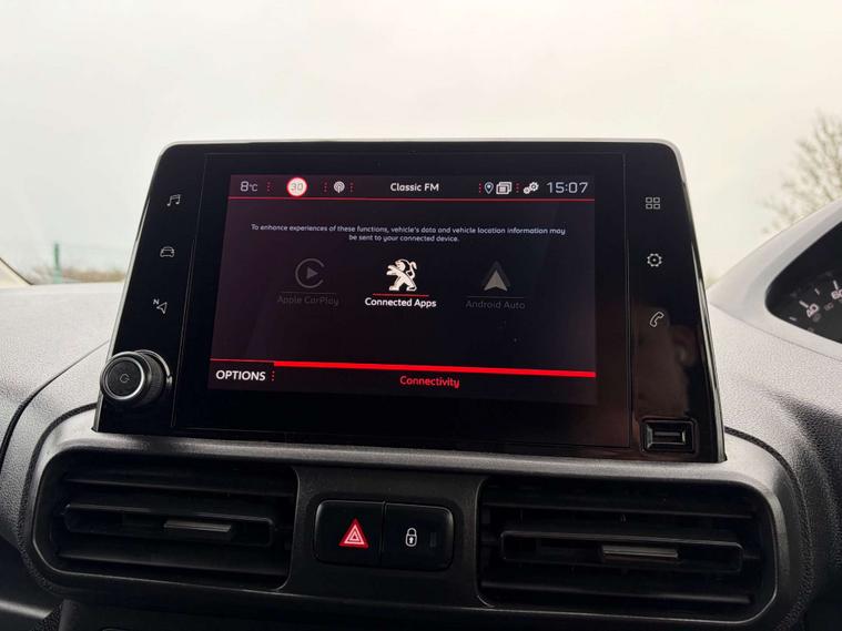 This 2020 Peugeot Partner van is a standout choice, boasting a clear vehicle history and having had only one owner from new. As a 1.5 BlueHDi 650 Professional Standard Panel Van SWB, it's equipped with a reliable 1.5 litre diesel engine and meets Euro 6 emissions standards. The Professional trim level ensures a practical and comfortable experience, featuring 15 inch steel wheels with Milford wheel covers, height adjustable halogen headlights with automatic illumination and daytime running lights, and air conditioning. Inside, you'll find an 8 inch capacitive colour touchscreen complete with Connect DAB Radio, Bluetooth handsfree, and a USB socket, alongside rear parking sensors for added convenience.
