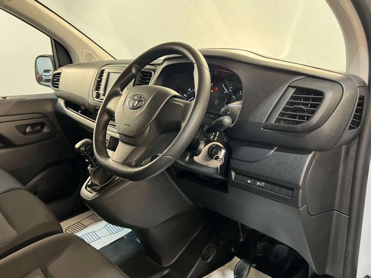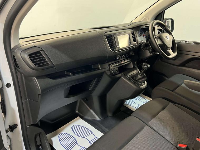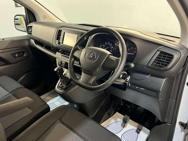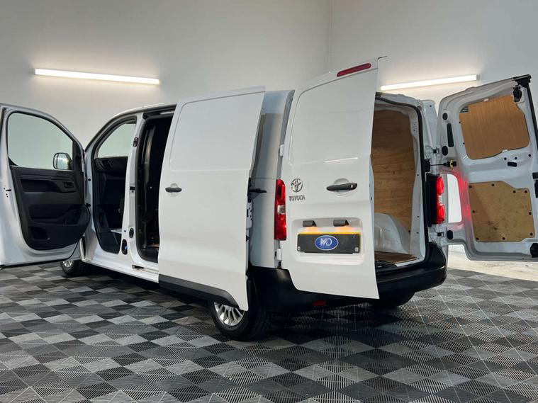 MD CarStore are proud to showcase this stunning low mileage Toyota ProAce having covered only 43, 357 miles and hosting a fantastic specification including Satellite Navigation, Apple Car Play / Android Auto, Air Conditioning, DAB Digital Radio, Bluetooth Connectivity, USB Connection Points, Twin Side Loading Doors, Rear Barn Doors, plus so much more. The ProAce has clearly been well cared for with 1 owner from new and comes complete with a fully documented service history record, complete book pack, 2 keys 12 months AA Roadside Assistance and remainder of manufacturer warranty.. It is cleanly ply lined in the rear and complete with bulk head, rear lighting, grab handle and anchor points. The rear barn style doors and side loading doors provide easy and ample access for loading large and bulky items. This van is ULEZ compliant and we can offer finance to suit all budgets and criteria.