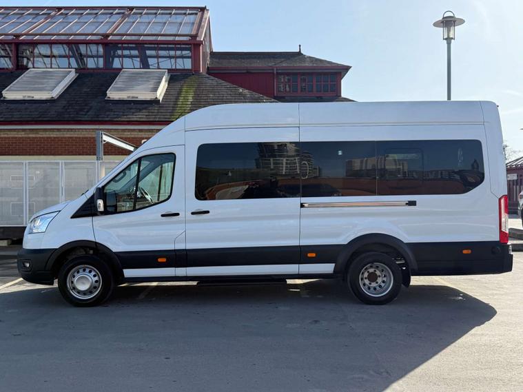 A well-maintained and highly practical Ford Transit 460 EcoBlue Leader Minibus, finished in White and configured as a 17-seat double rear wheel (DRW) minibus. This is a 1 owner vehicle from new and is VAT qualifying, making it ideal for business, school, transport or community use.