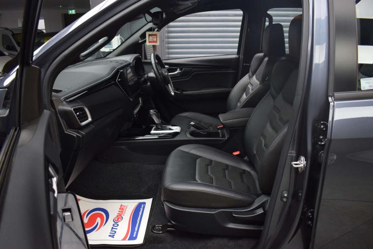 The specification consists of; Full Black leather trim, Electrically adjustable drivers seat, Heated front seats, Traction control, Hill decent, Digital climate control, Air conditioning, Colour touch screen multi media system, Apple car play, Android auto, Bluetooth, DAB, USB, AUX, leather bound multi function steering wheel, Adaptive cruise control, Speed limiter, Collision assist, Lane keep assist, Auto lights, Auto wipers, Keyless entry, Keyless Go, Remote central locking, Electric adjustable folding mirrors, Electric windows, Reversing camera, Front & Rear parking sensors, Rear Isofix seats, Rear USB port, Truckman top with fitted full rubber floor mat, 19" Satin grey alloy wheels and Tow Bar.