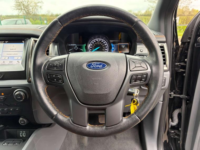 This 2019 Ford Ranger Wildtrak 4x4 Double Cab is presented with a clear vehicle history check, offering peace of mind for its next owner. Powered by a robust 3.2 litre TDCi diesel engine and featuring a capable four wheel drive drivetrain, this automatic transmission model is ready for any challenge. The Wildtrak derivative boasts a generous towing weight of 3500 kg, making it ideal for heavy loads. Inside, you'll find dual zone climate control for personalised comfort, heated front seats for those colder days, and automatic headlights for convenience. Stay connected and entertained with Bluetooth audio streaming, and manoeuvre with ease thanks to the rear parking sensor.