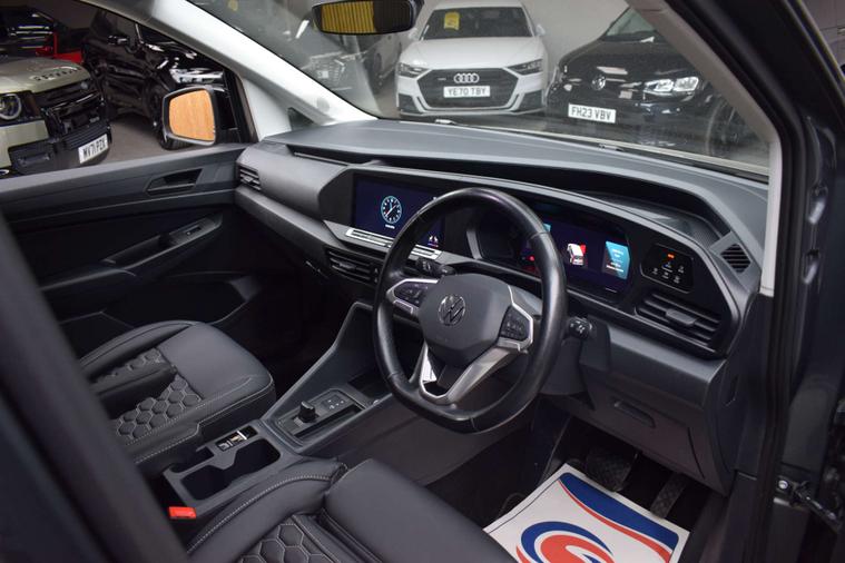 We are delighted to offer for sale this absolutely stunning Volkswagen Caddy Commerce Pro 2.0 TDI DSG Automatic Combi-Van. This outstanding example comes finished in Indium Grey Metallic with a Contrasting Black Faux Leather with Hexagon Stitch Trim and sits on some lovely 18” Gloss Black Alloy Wheels with Brand New Tyres. Our Caddy boasts a Full Service Record and will come supplied with the Balance of Manufacturers Warranty and 2 Keys. Additionally, all of our vehicles undergo a Pre Delivery Inspection and Road Test before sale. We pride ourselves in the quality and preparation of our vehicles and the service in which we offer our customers.