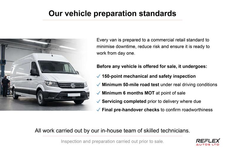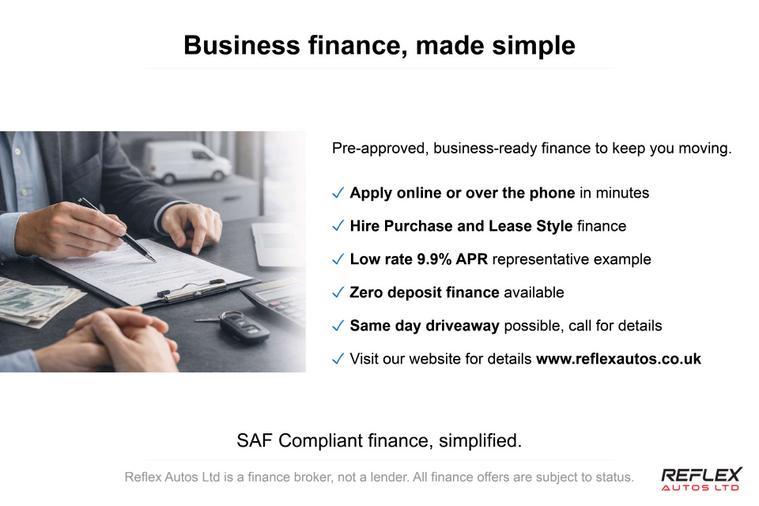 Ex-fleet vehicle prepared to a commercial retail standard and ready for immediate business use. Supplied by Reflex Autos Ltd, specialists in used commercial vehicles. This vehicle has been sourced from fleet / finance use and prepared with reliability, safety, and day-to-day usability in mind. Ready to go straight to work.