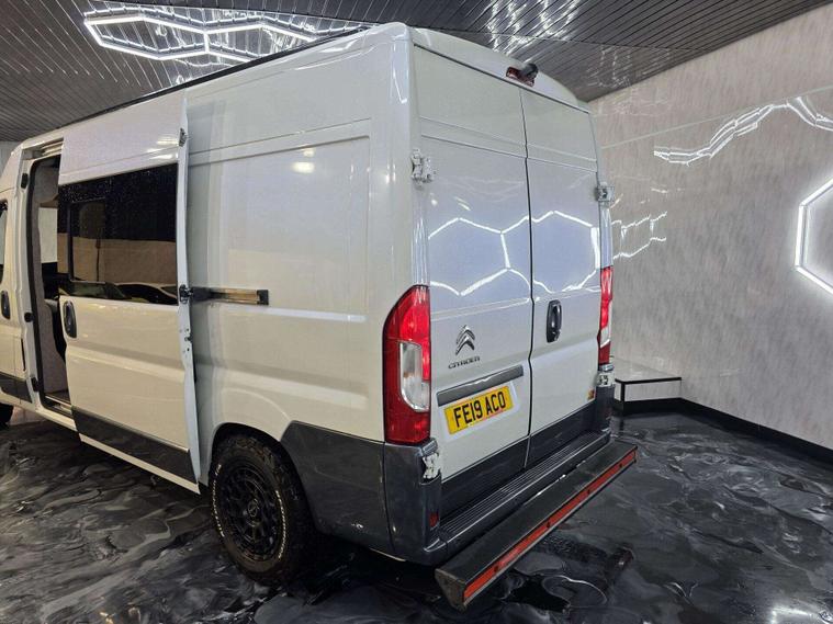 Finished in a stunning full white pearlescent paint job with royal grey colour coded bumpers and door handles, this professionally converted Citroën Relay campervan is built for adventure and ready to hit the road. Sitting on SWAMPER lightweight load-rated alloy wheels wrapped in brand new BF Goodrich All-Terrain tyres, it has the perfect rugged look for exploring anywhere.