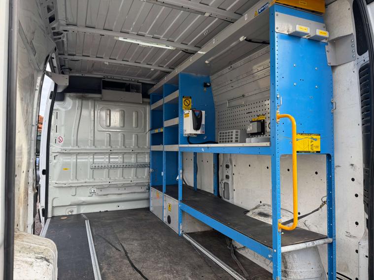 Features include working roof beacons and rear shelving (which can be removed on request), making it ideal for trade use or conversion.